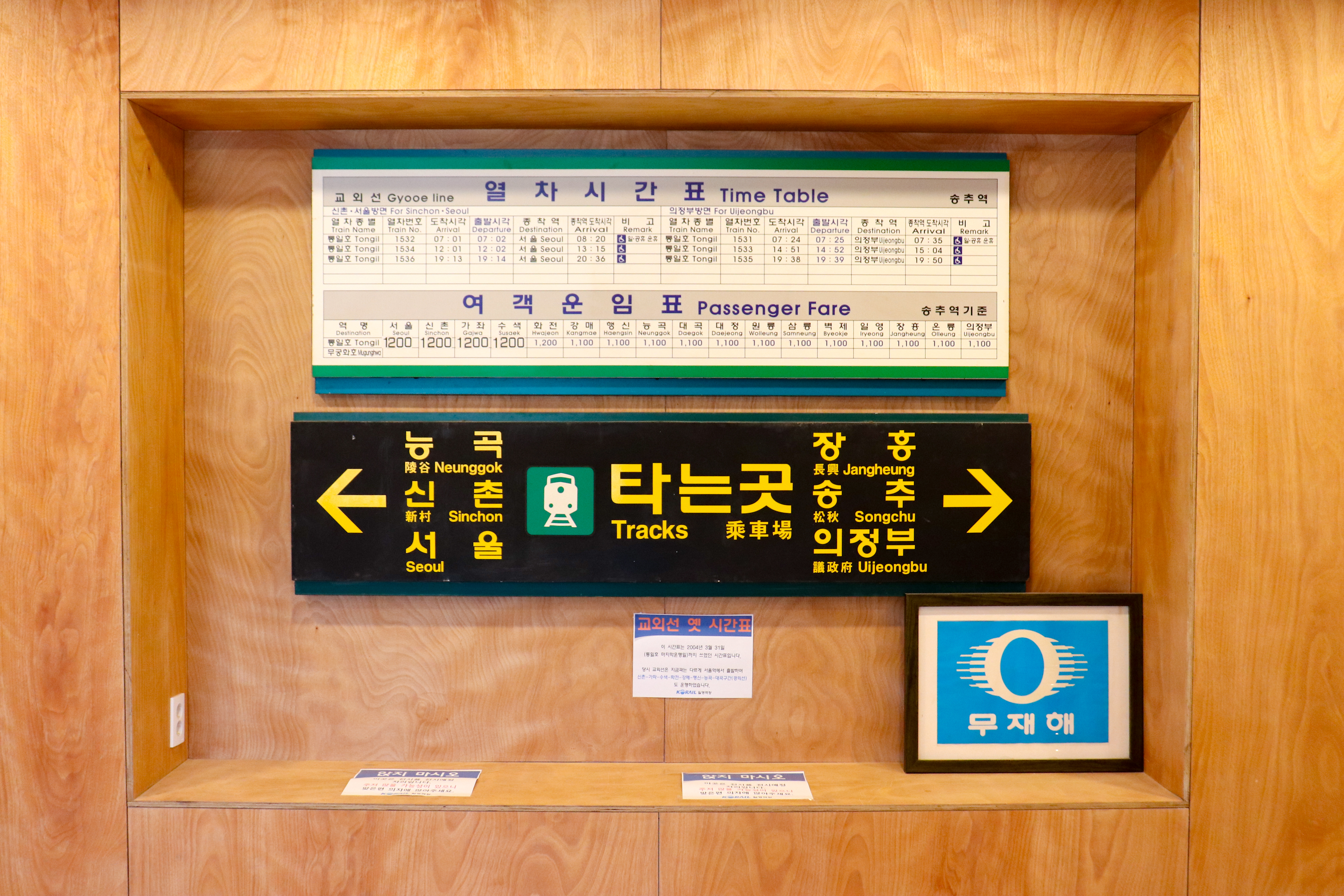 리모델링하기 전 시간표가 행선판등을 전시하고 있다.